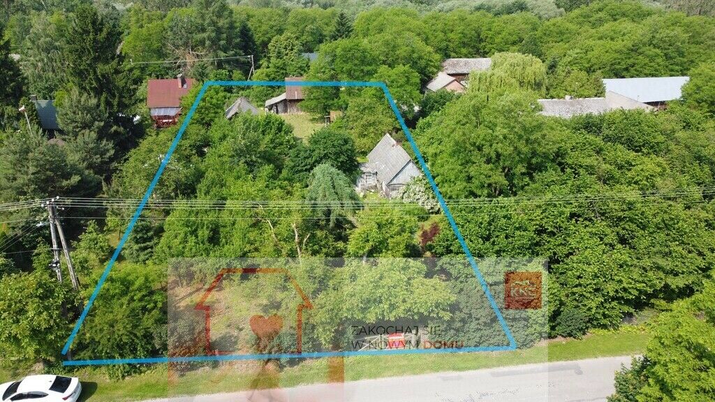Atrakcyjna działka budowlana o pow. 2085 m2 z zabudowaniami w postacidomu drewnianego i zabudowań gospodarczych 300 metrów w linii